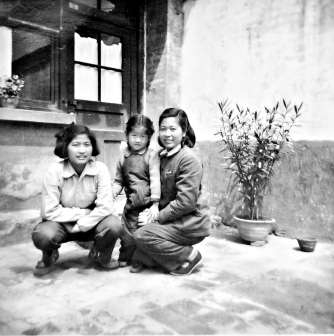 1954年4月,本文作者與母親鄭曼、表姐陳湘舫攝于筆管胡同7號(hào)住所門前。